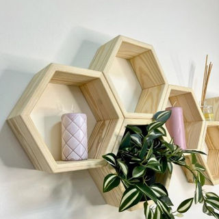 Hexangoner som konst, hyllor och möbler för hem och trädgård.